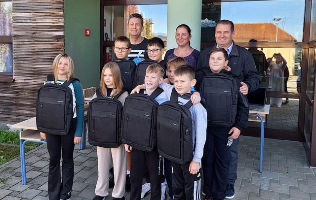 Računala su simbolično uručena učenicima 5.c razreda Područne škole Pavla Štoosa, koji su s osmijehom primili nove školske torbe s računalima.